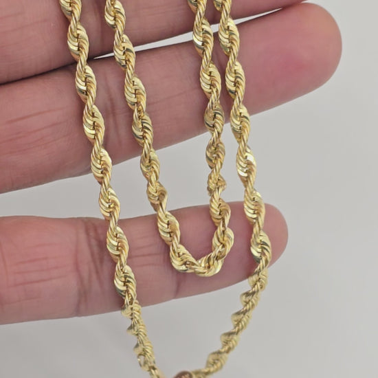 14KT REAL GOLD SPARKLE ROPE CHAIN 4MM